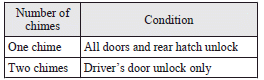 Each time the door and rear hatch unlock function is set, a chime will sound to tell you the condition of the door and rear hatch unlock function.